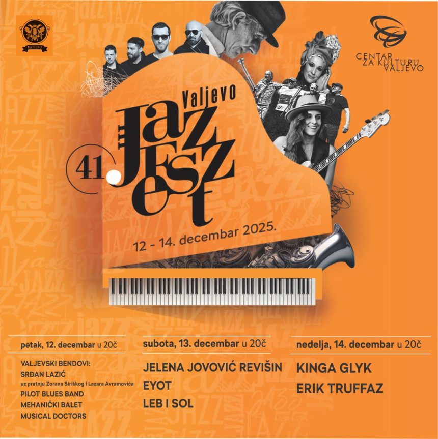 Valjevo će od 12. do 14. decembra ponovo biti prestonica vrhunskog džeza – počinje 41. Valjevo Jazz Fest, jedan od najznačajnijih muzičkih festivala u Srbiji, koji već više od četiri decenije okuplja renomirane umetnike i ljubitelje kvalitetnog zvuka. Tokom tri festivalske večeri, publiku očekuje uzbudljiv programski spoj domaćih bendova, regionalnih imena i svetskih džez atrakcija.