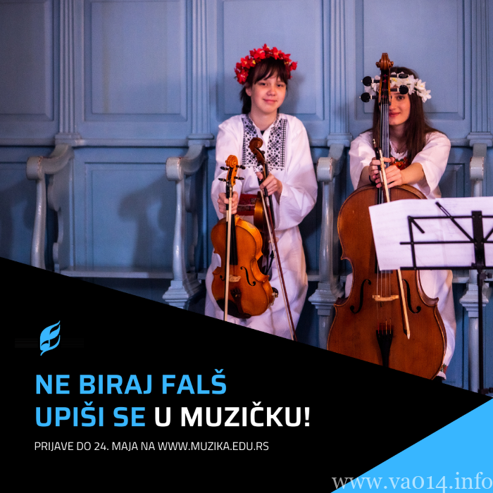 Sva deca uzrasta od 9 godina i mlađi, mogu se prijaviti za polaganje prijemnog ispita za instrumente: klavir, violina, violončelo, gitara, harmonika, flauta.