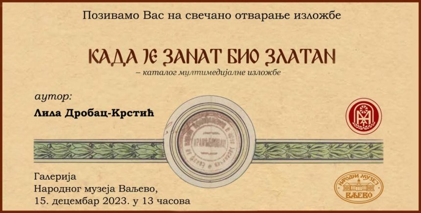 Multimedijalna izložba „Kad je zanat bio zlatan“ Narodnog muzeja u Aranđelovcu biće svečano otvorena u petak, 15.decembra u Galeriji Narodnog muzeja u 13 sati.