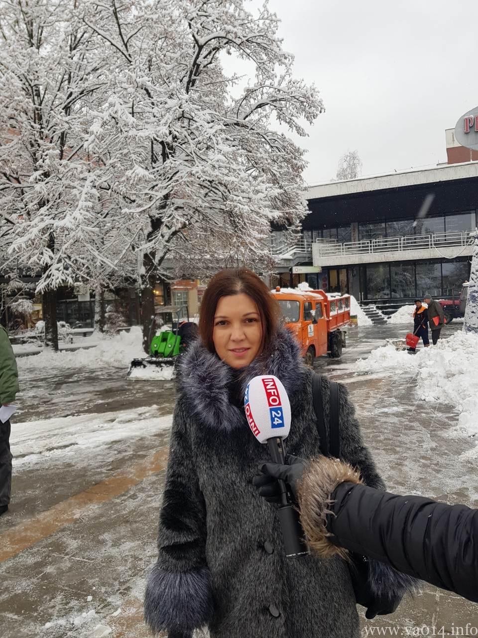 Zbog snega koji je neprestano padao više od 24 sata, u petak u ranim jutarnjim satima radnici Javnog komunalnog preduzeća „Vidrak“ su čistili ručno, lopatama pešačke prelaze i trotoare na mostovima, gradske trgove dok mašine za čišćenje snega su kružile gradom i čistile prilaze javnim ustanovama.