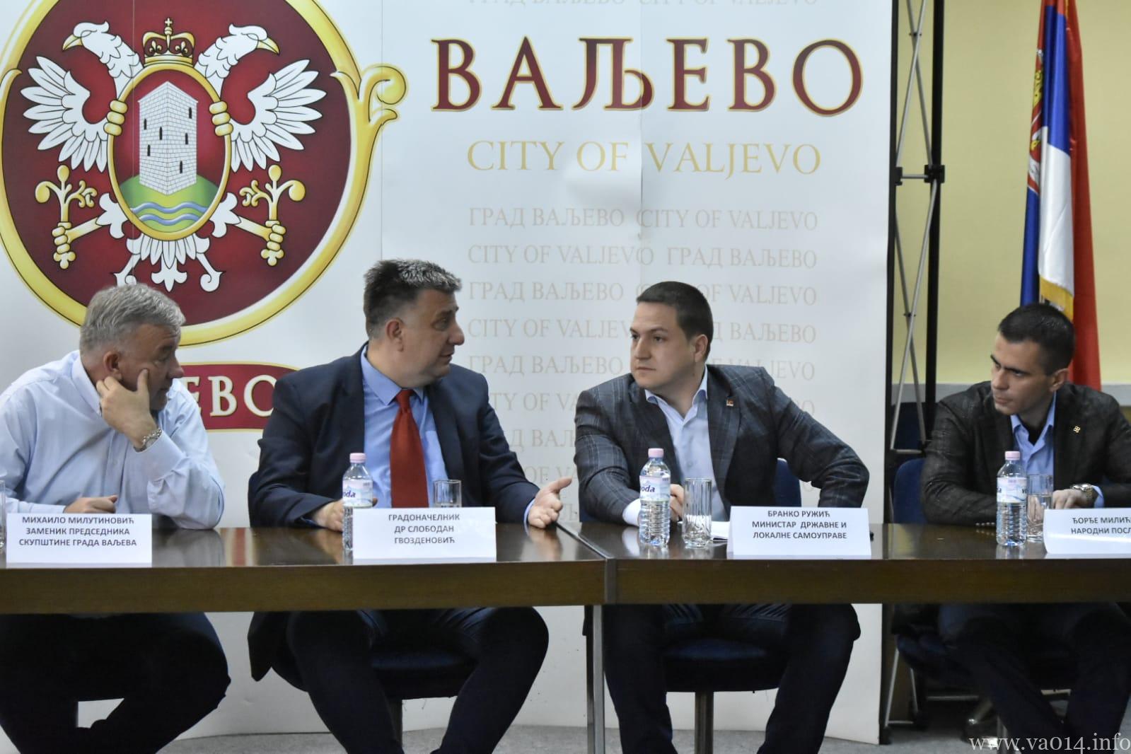 Ministar za državnu upravu i lokalnu samoupravu Branko Ružić je razgovarao sa rukovodstvom grada Valjeva o projektima koji se finansiraju preko ovog ministarstva, a koji su usmereni na unapređenje života građana ovog dela Srbije.
