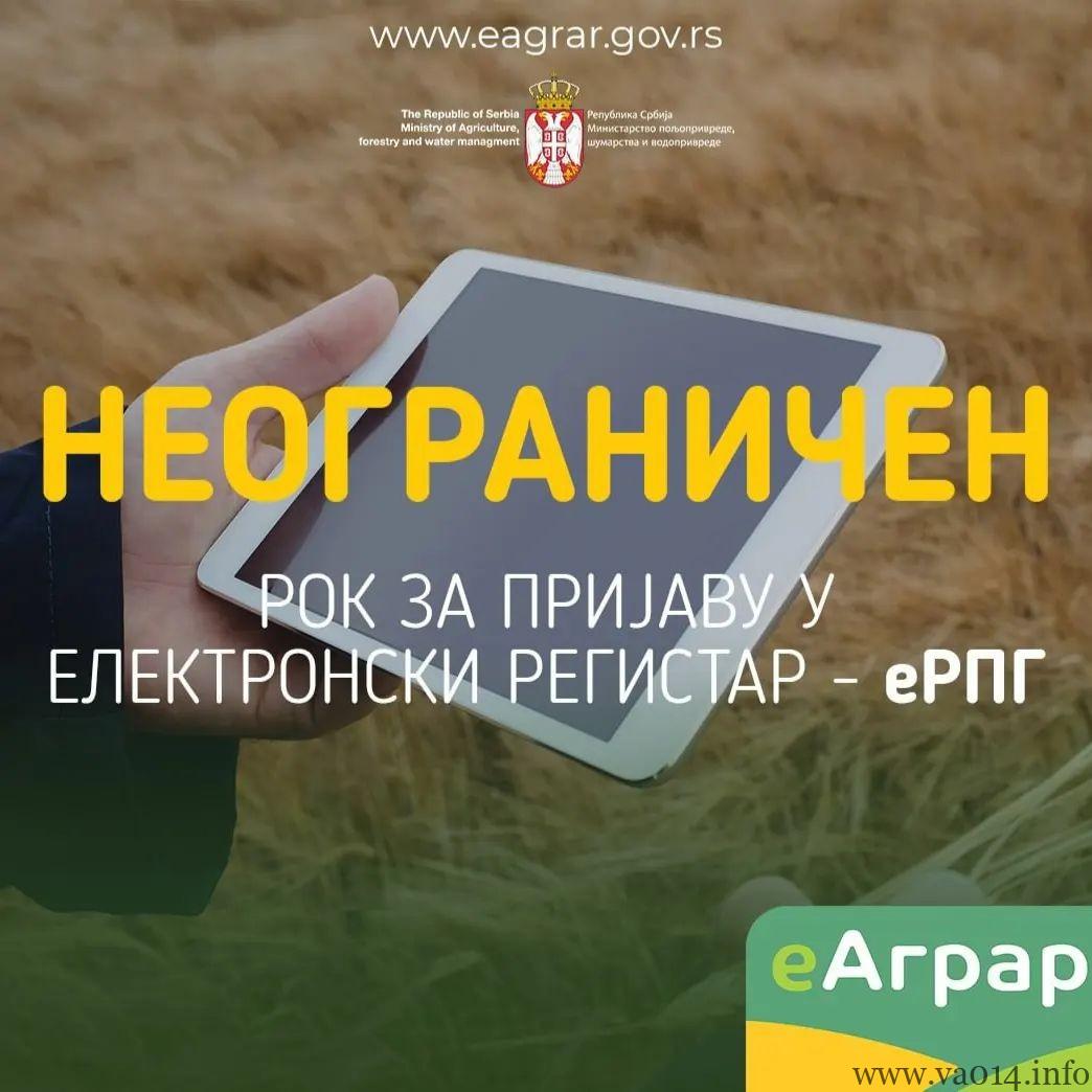 Iz Poljoprivredne savetodavne i stručne službe Valjevo, obaveštavaju sve poljoprivredne proizvođače da krajnji rok za prijavu u sistem eRPG ne postoji, što znači da su građani u mogućnosti da prijavu i obnovu statusa gazdinstva obave sve do trenutka podnošenja zahteva za željenu subvenciju.