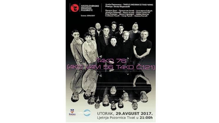 U ponedeljak 29.oktobra u Velikoj sali Centra za kulturu Valjevo, u 20 časova biće odigrana pozorišna predstava „Tako je (Ako vam se tako čini)“Luiđija Pirandela u režij Jagoša Markovića.